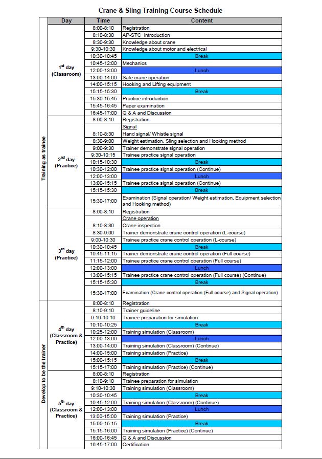 การฝึกอบรมผู้บังคับปั้นจั่น ผู้ให้สัญญาณแก่ผู้บังคับปั้นจั่น ผู้ยึดเกาะวัสดุ และผู้ควบคุมการใช้ปั้นจั่น สำหรับการเป็นเทรนเนอร์