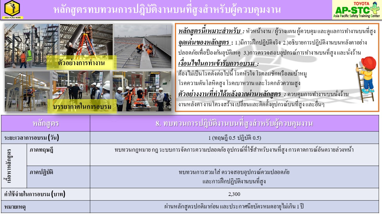 การทบทวนการอบรมความปลอดภัยบนพื้นที่สูง สำหรับผู้ควบคุมงาน