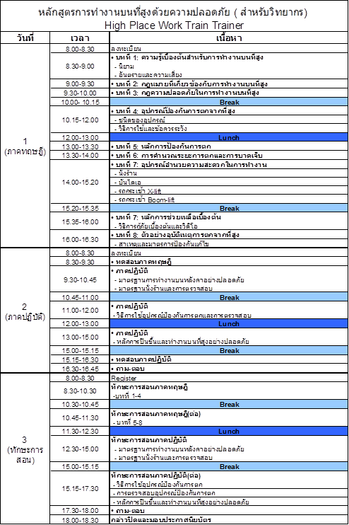 การปฎิบัติงานบนที่สูง สำหรับเทรนเนอร์