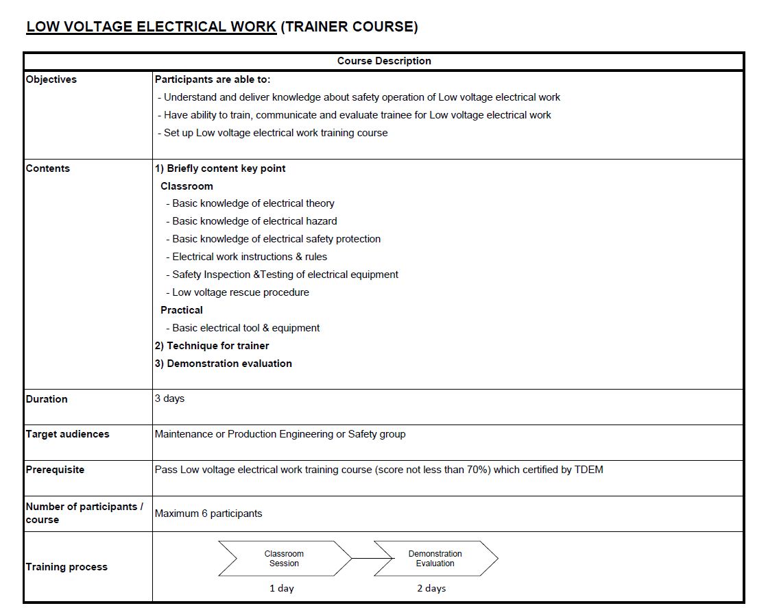 ความปลอดภัยในการปฏิบัติงานกับไฟฟ้าแรงดันต่ำ สำหรับเทรนเนอร์